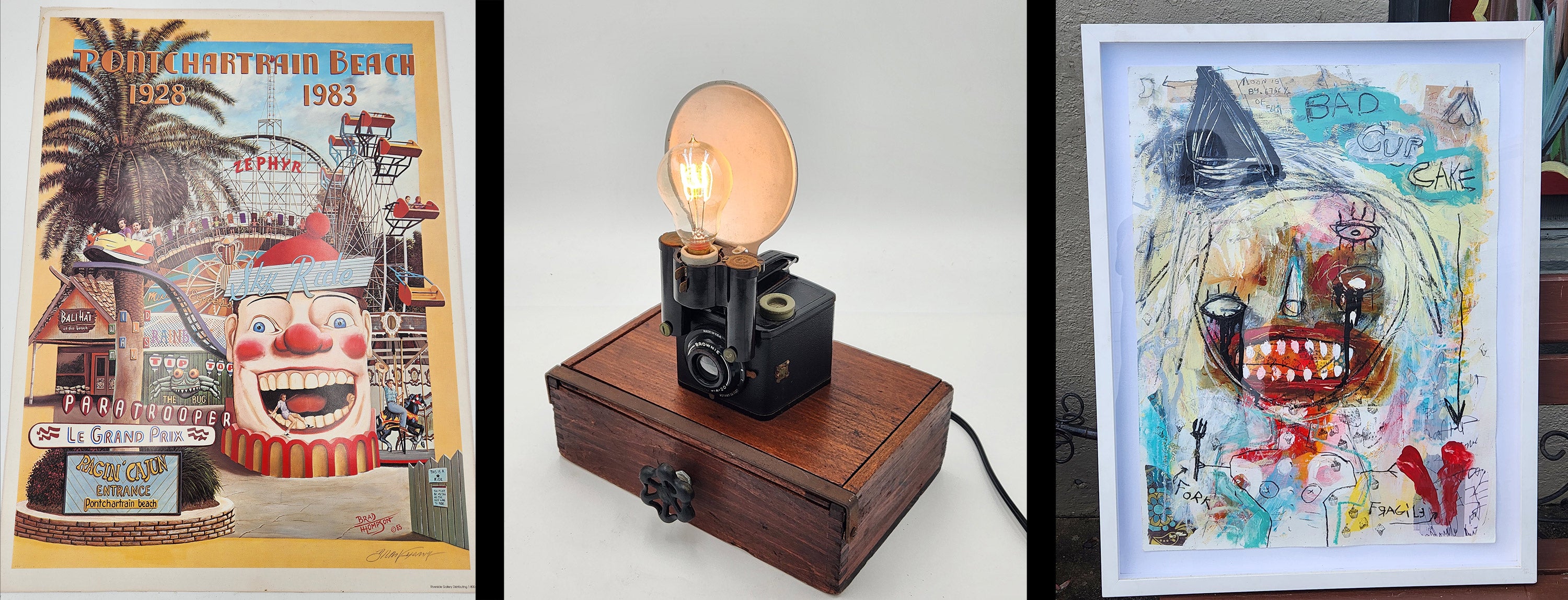 - Outsider Art: Raw, authentic works by self-taught artists, including prison art, trench art, and tramp art. Plus, a rotating selection of pieces by local New Orleans artists.