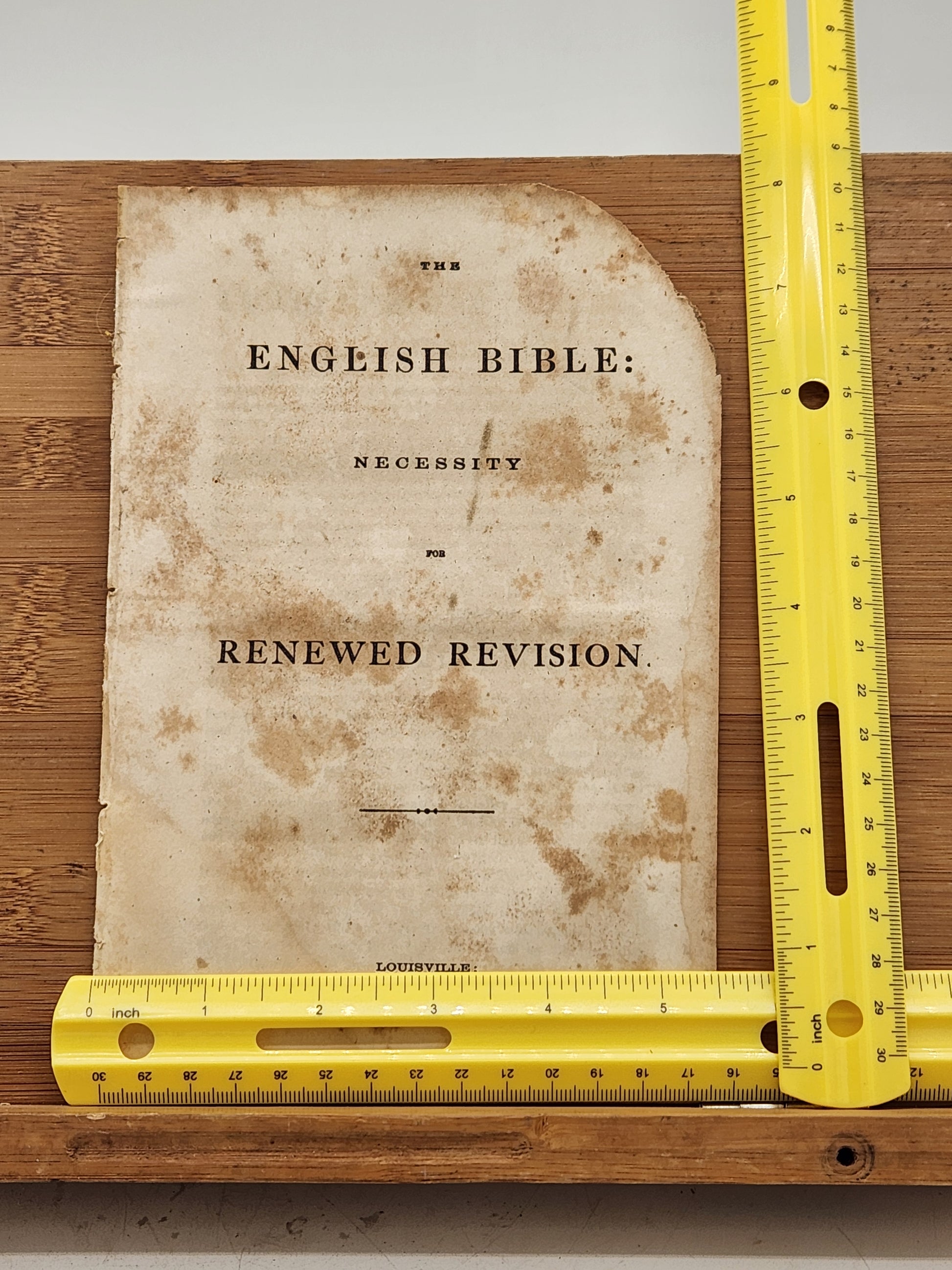 The Bible Revision Association, based in Louisville, Kentucky, was part of a broader 19th-century movement to update and revise the English Bible for greater accuracy and clarity. Many felt that existing translations, such as the King James Version, contained errors and archaic language that needed correction. These revision efforts often sparked controversy between traditionalists and those advocating for change.