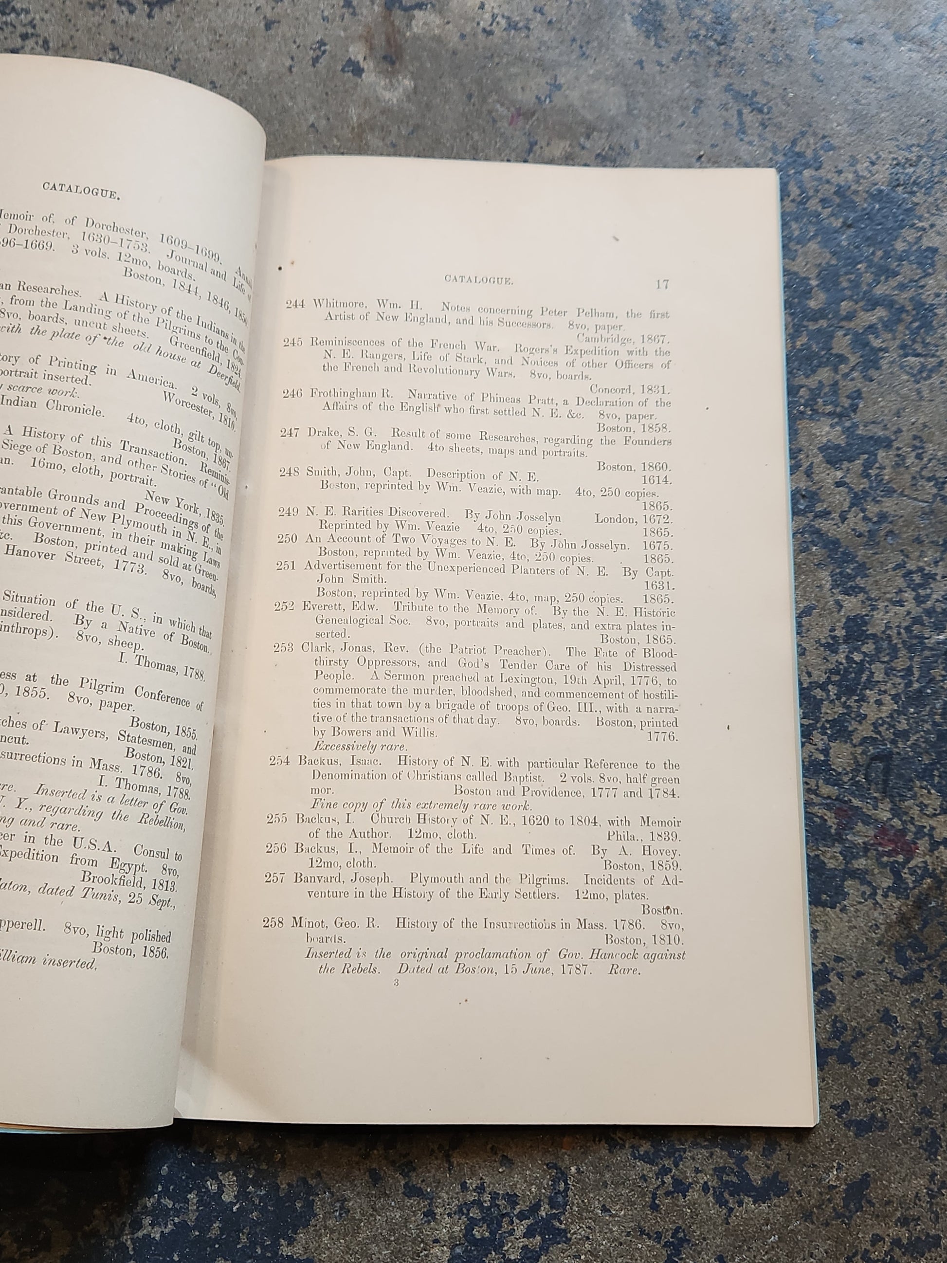 Original 19th-century auction catalogue printed by Rand, Avery & Co., Boston, for the sale of books, rare papers, and autographs relating chiefly to New England, including Massachusetts, Vermont, New Hampshire, Connecticut, and Rhode Island.