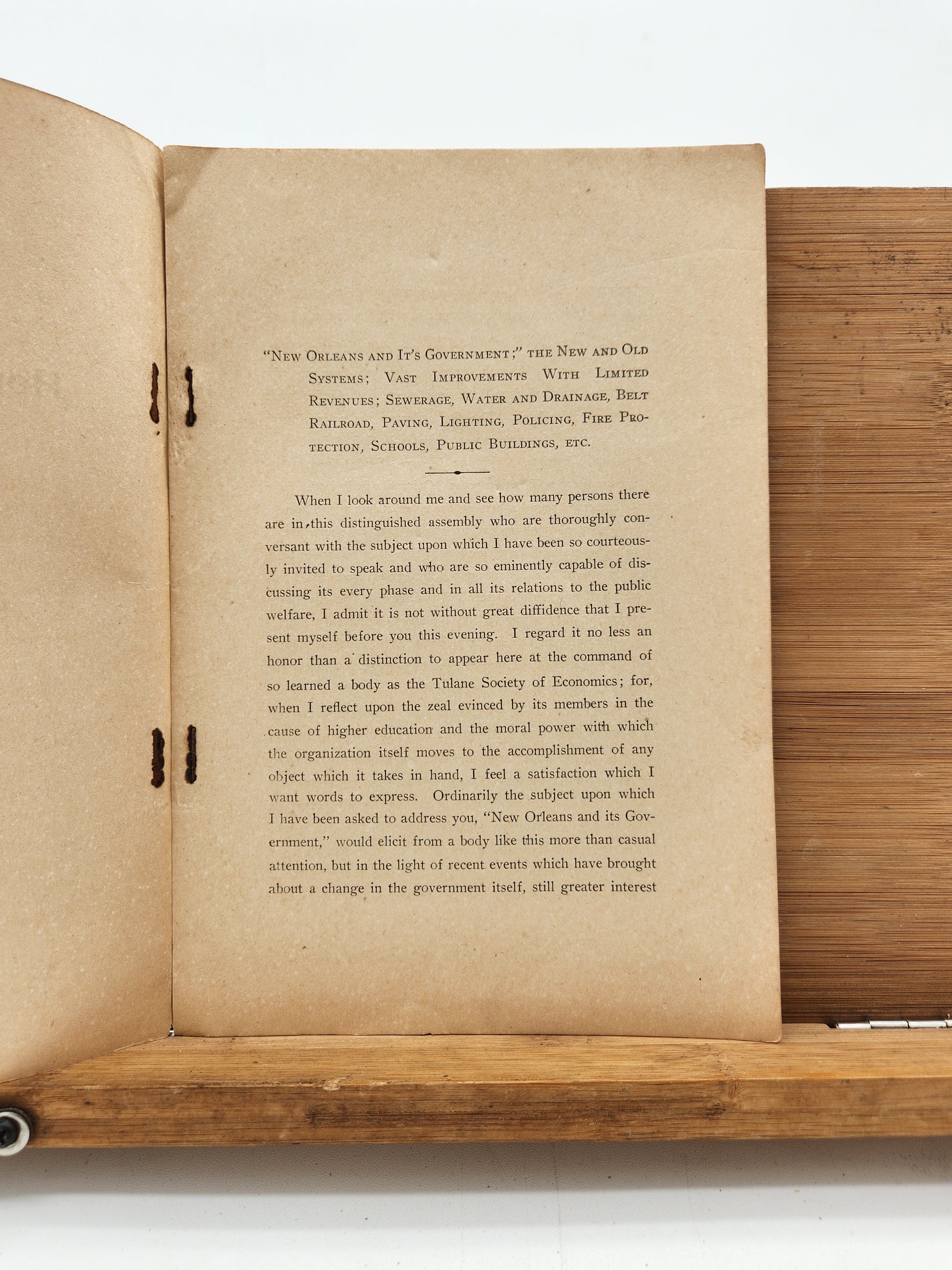 This rare publication documents his own account of civic reform and public administration in early 20th-century New Orleans.