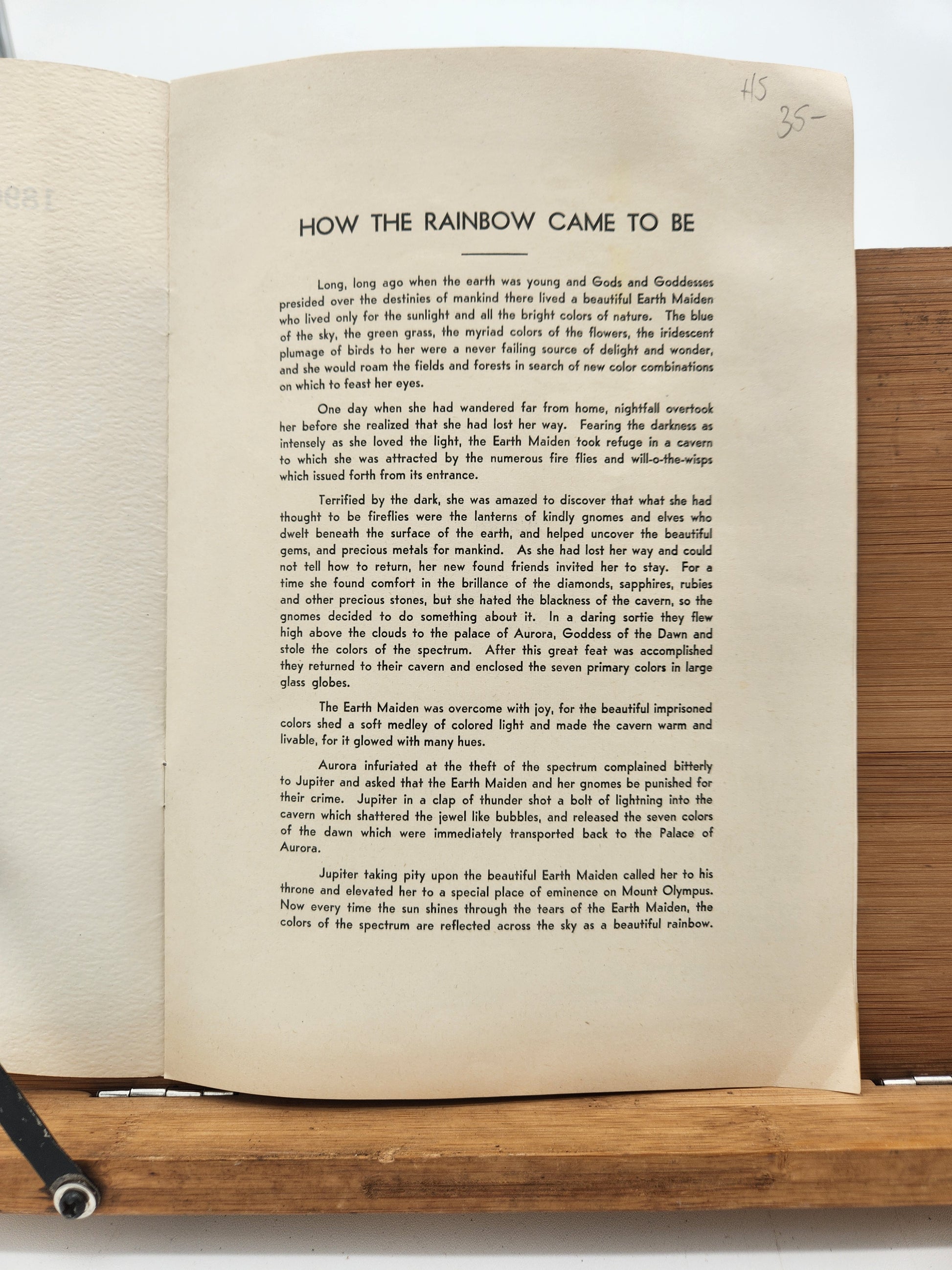 Includes the short mythic story “How the Rainbow Came to Be,” a retelling of a classical myth involving Aurora, Jupiter, and an Earth Maiden.