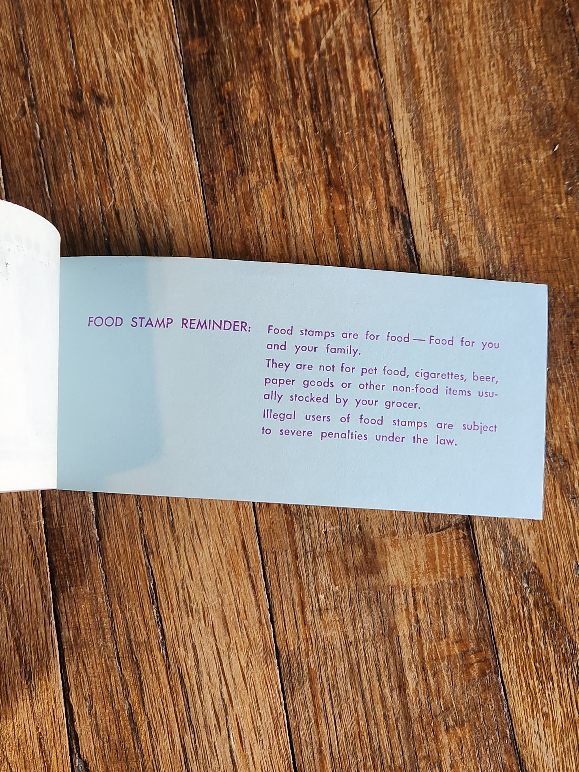 Printed in the late 1970s, this piece represents the final era before the transition from paper food stamps to electronic benefits. The graphic design, typography, and instructional text make it a strong example of American social-history ephemera.