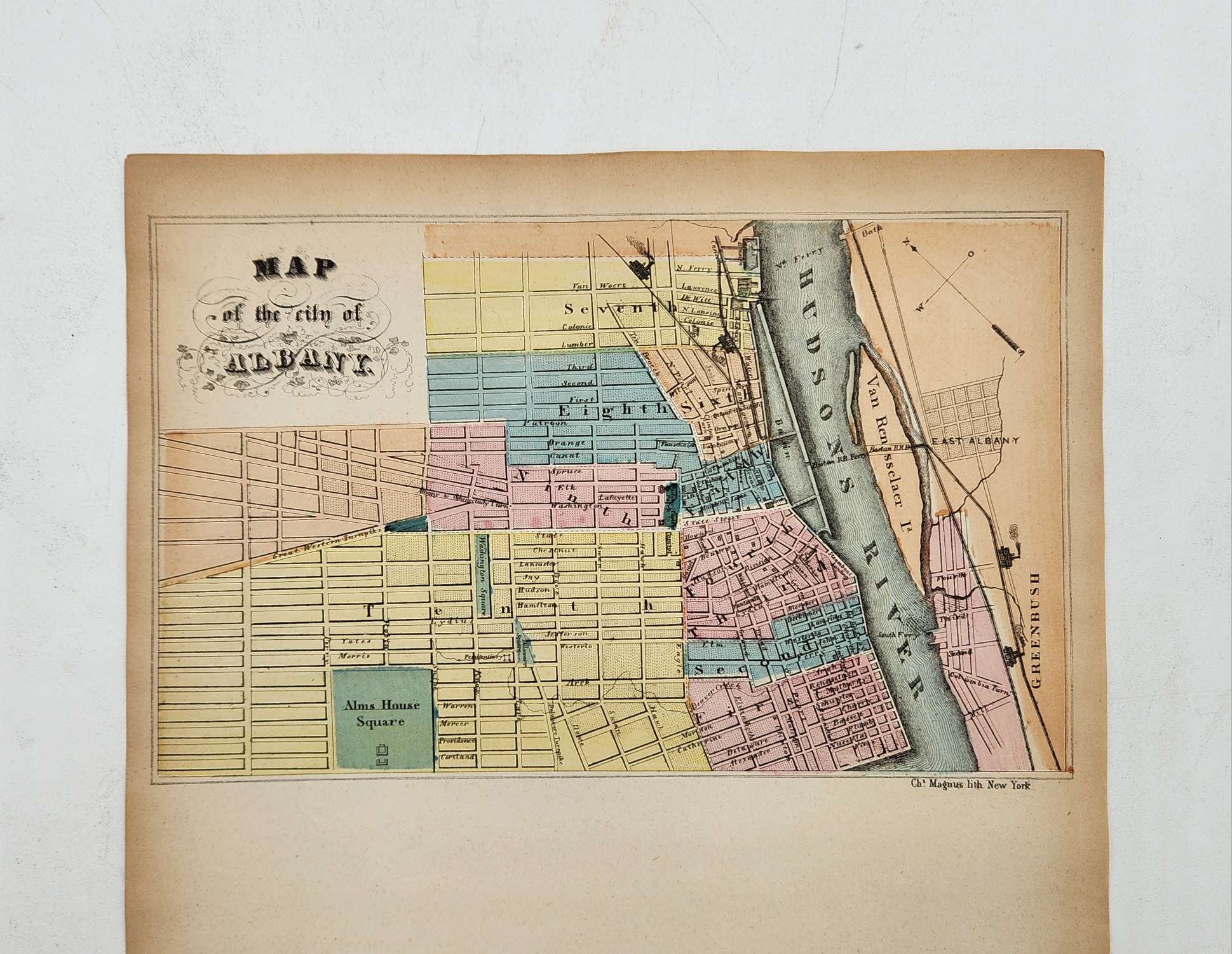 Antique Colored Lithograph Print Map of City of Albany New York Charles Magnus