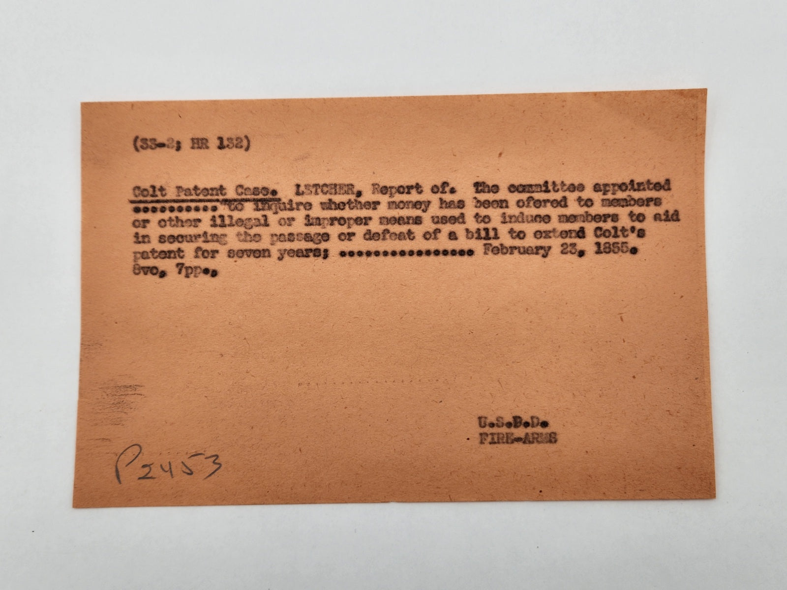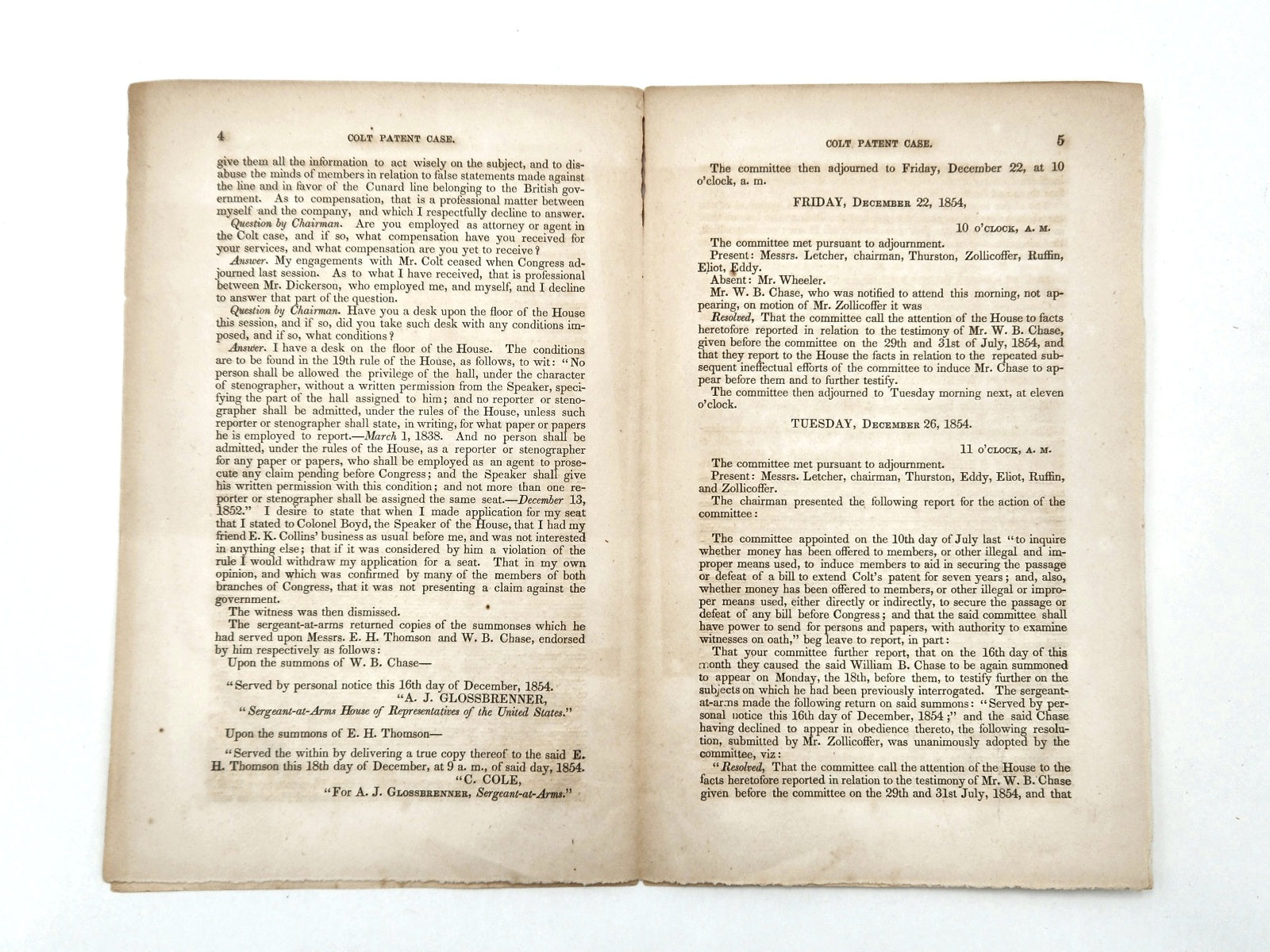 Report of the select comittee appointed to inquire wether money had been offered to members, to entice members to aid in securing the passage or defeat of a bill to extend Colt's patent for 7 years.