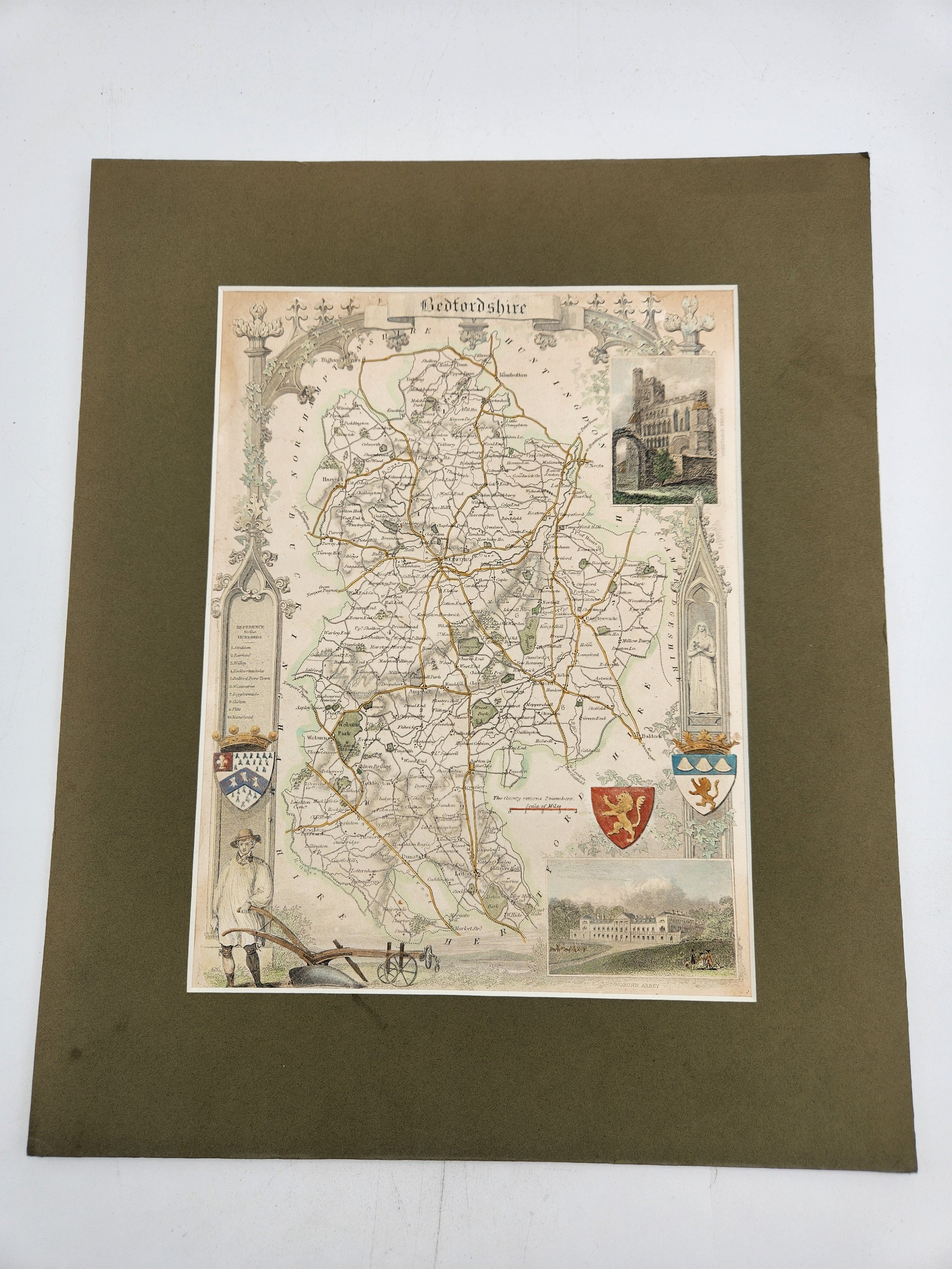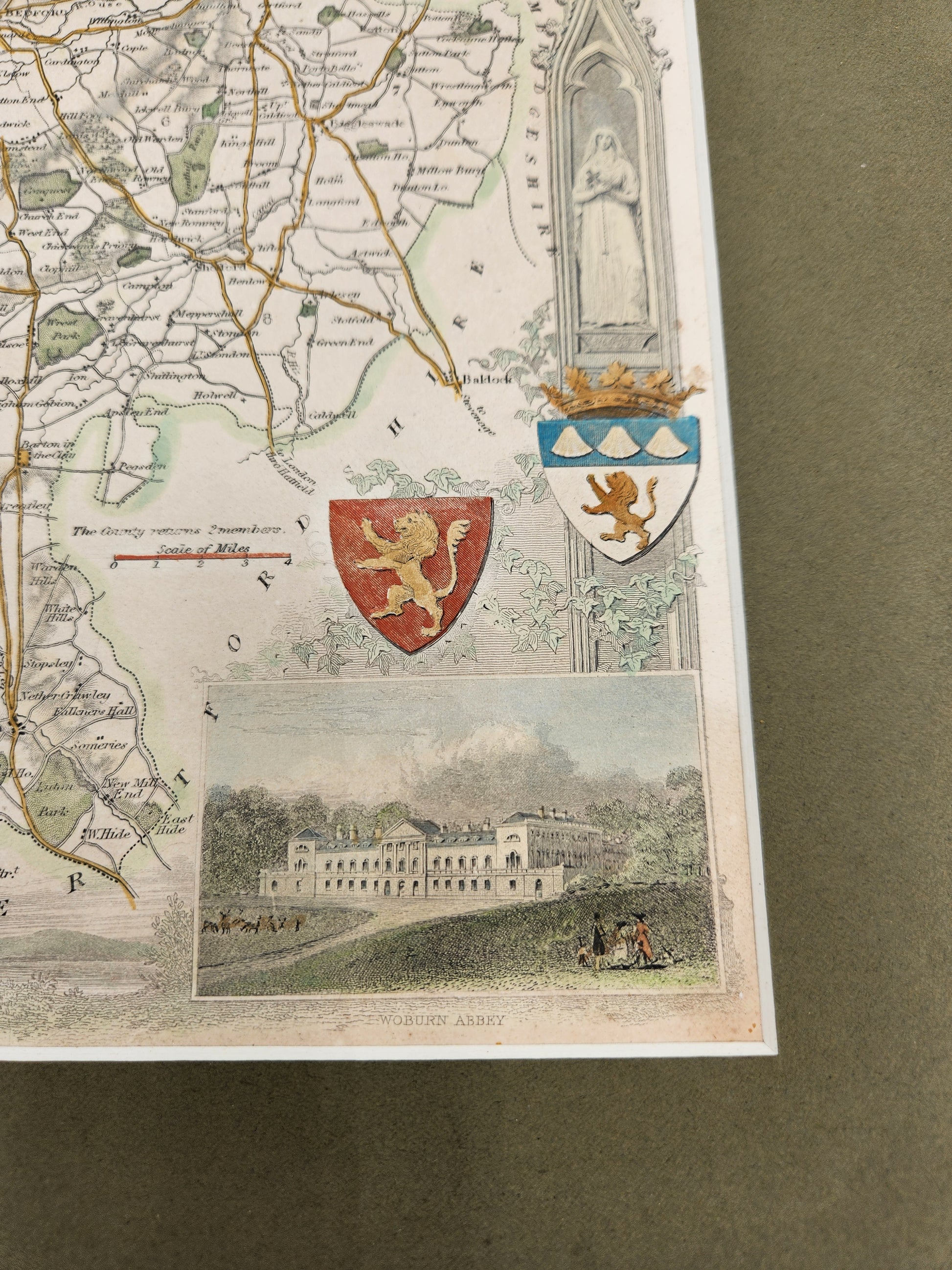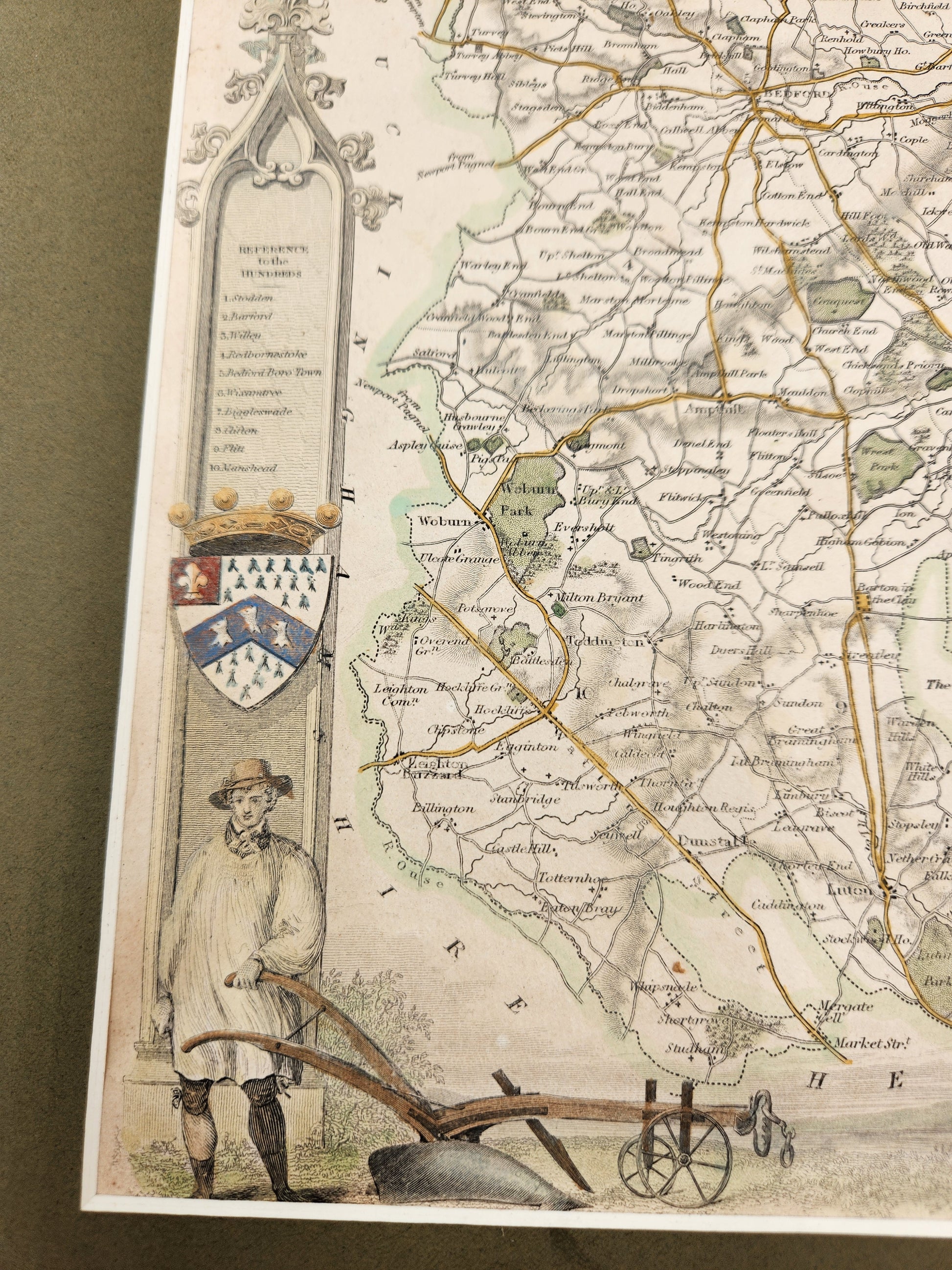 Hand Colored Map of Bedfordshire 1835 by Thomas Moule