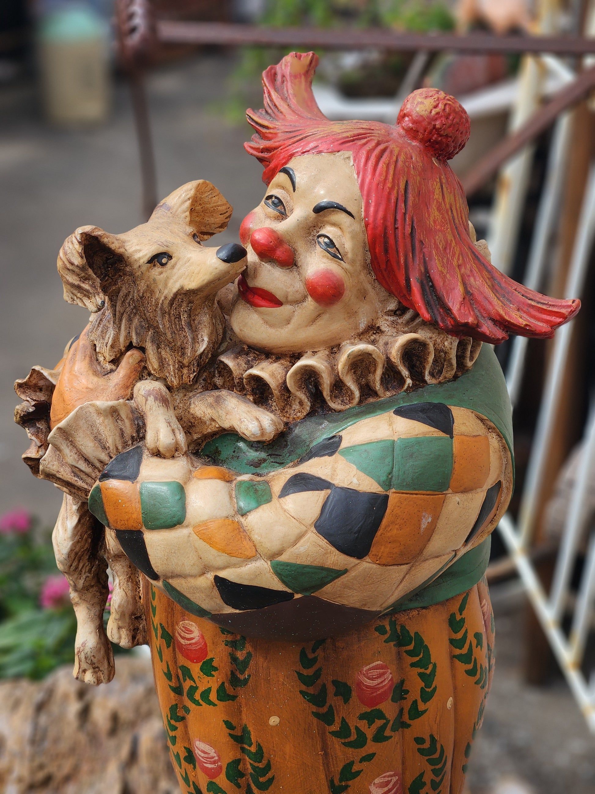 Hand Painted 1995 Jun Asilo Large Clown with Dog Sculpture