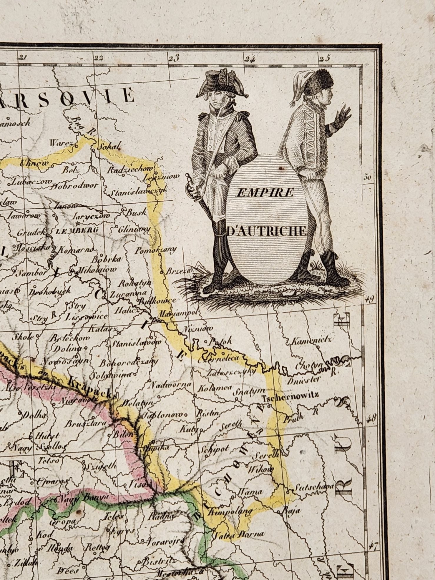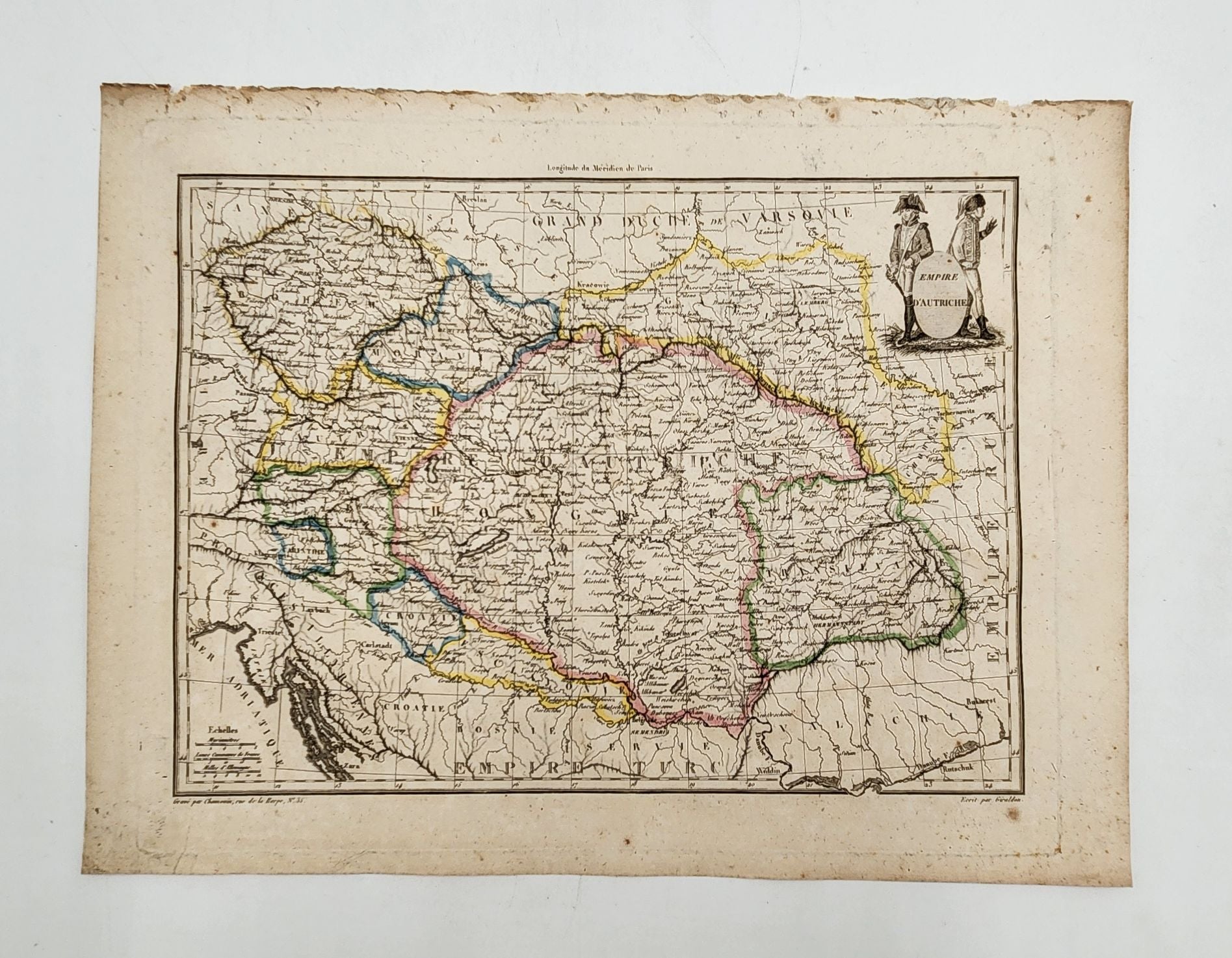 Antique hand colored map of Slovenia,Empire d'Autriche from the Atlas Complet du Precis de la Geographie Universelle de M. Malte-Brun, by Lapie, 1812. Colored by region and featuring a decorative cartouche. Good antique condition. See photos. Approx. 14.25 x 11 inches.