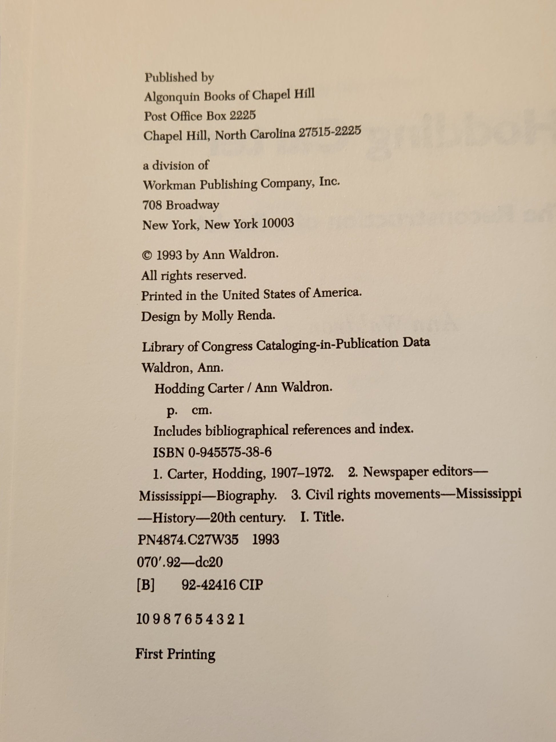 Publisher: Algonquin Books of Chapel Hill