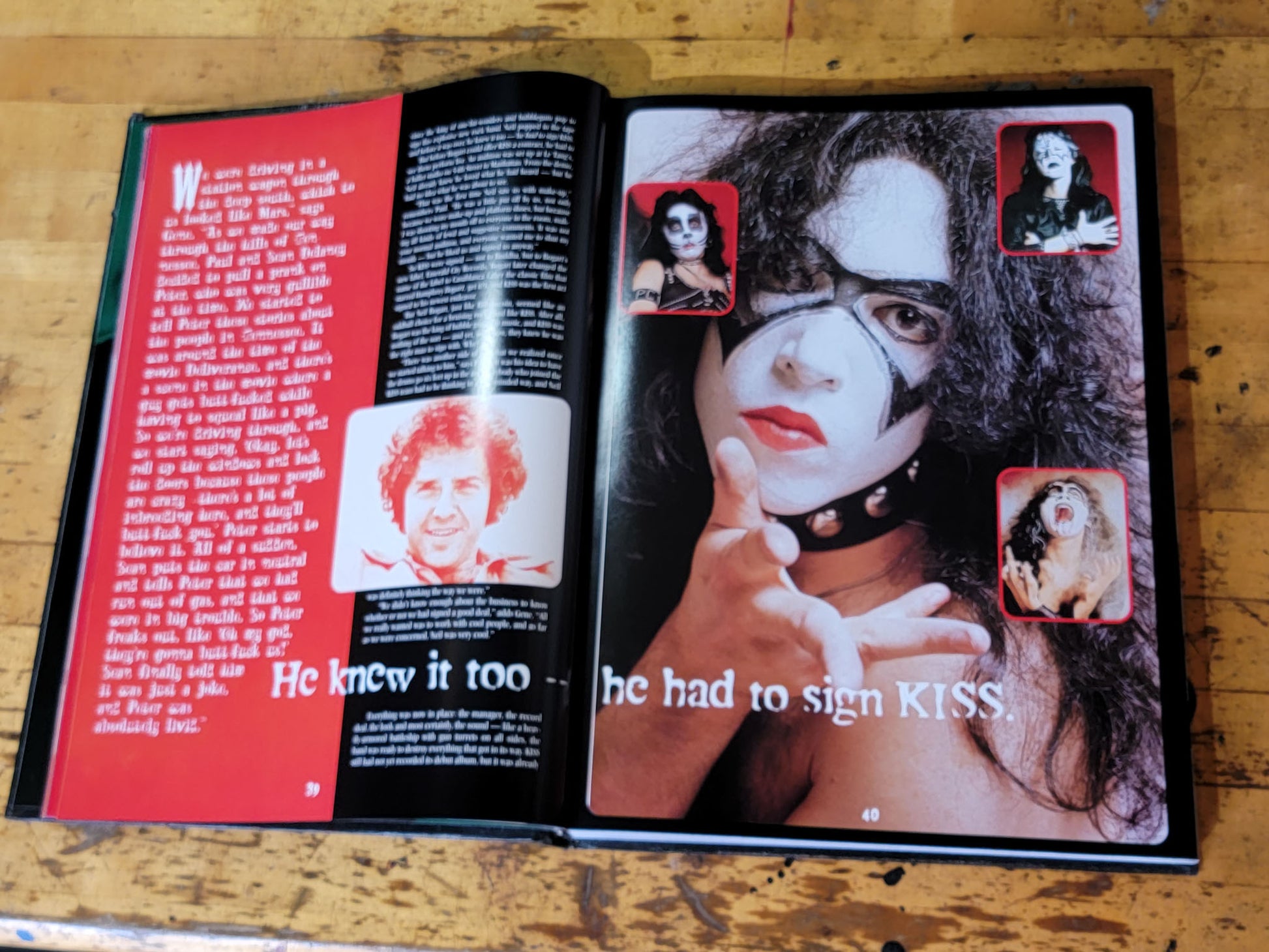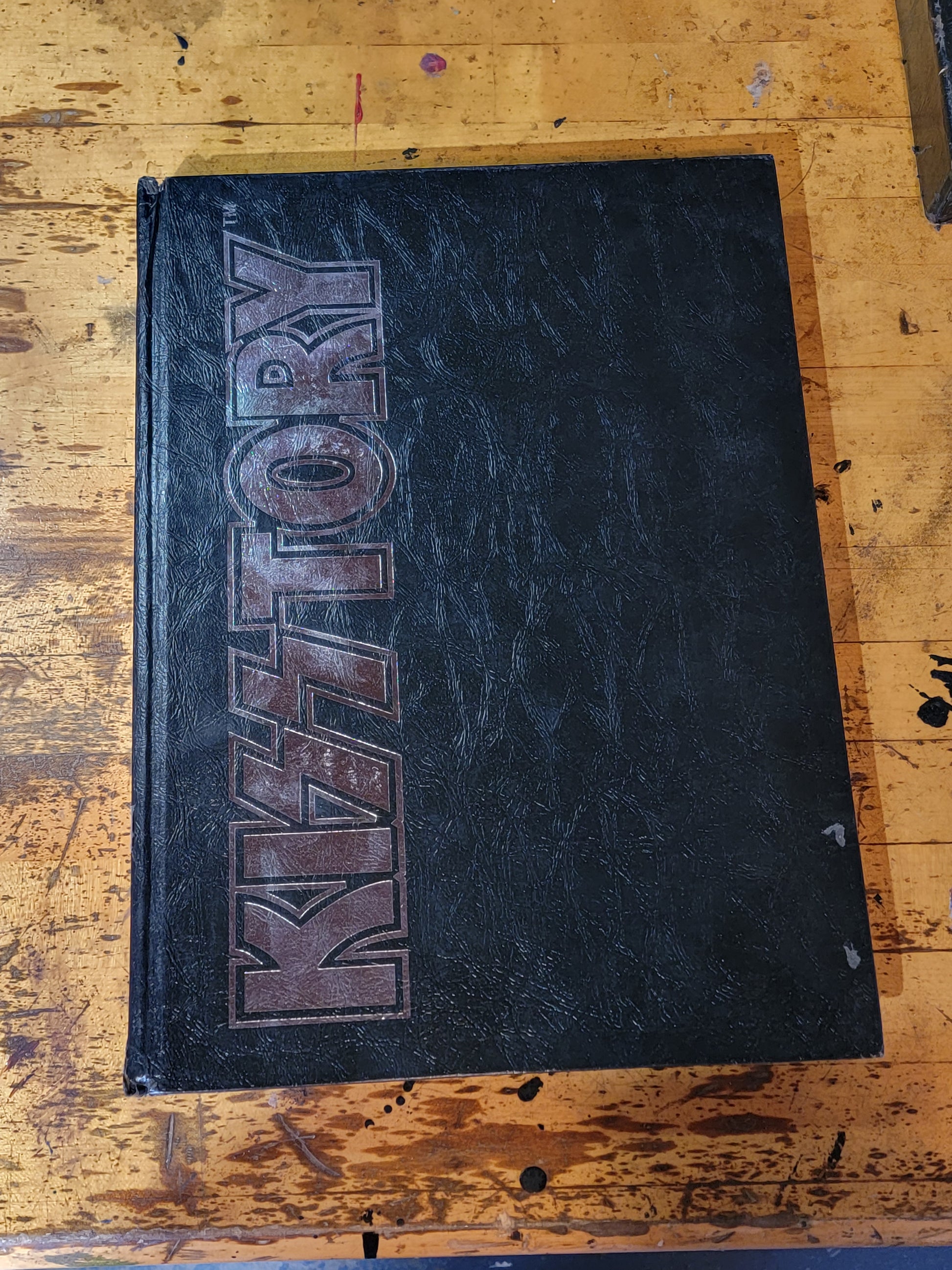 Kisstory is a large coffee table book that chronicles the career of one of the most interesting bands of all times, Kiss, It is signed by the entire band. It comes with the case which has some condition issues. The cover has one issue on the spine (pictured). The interior seems to be in great condition.