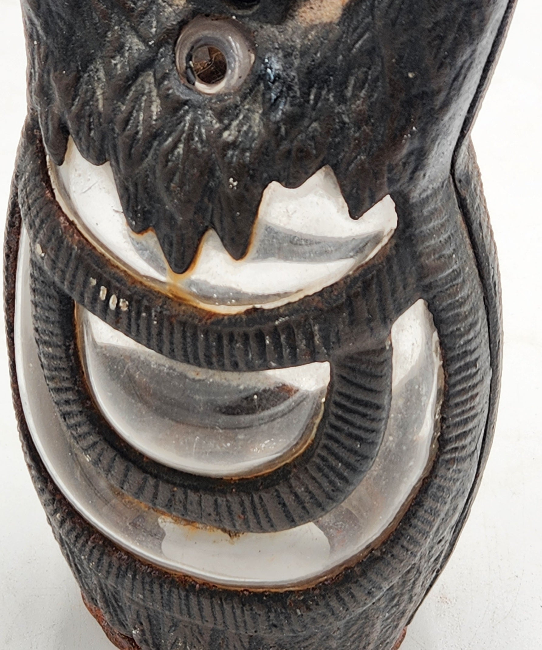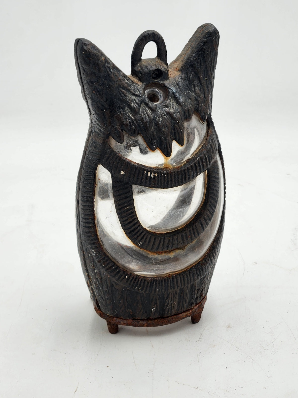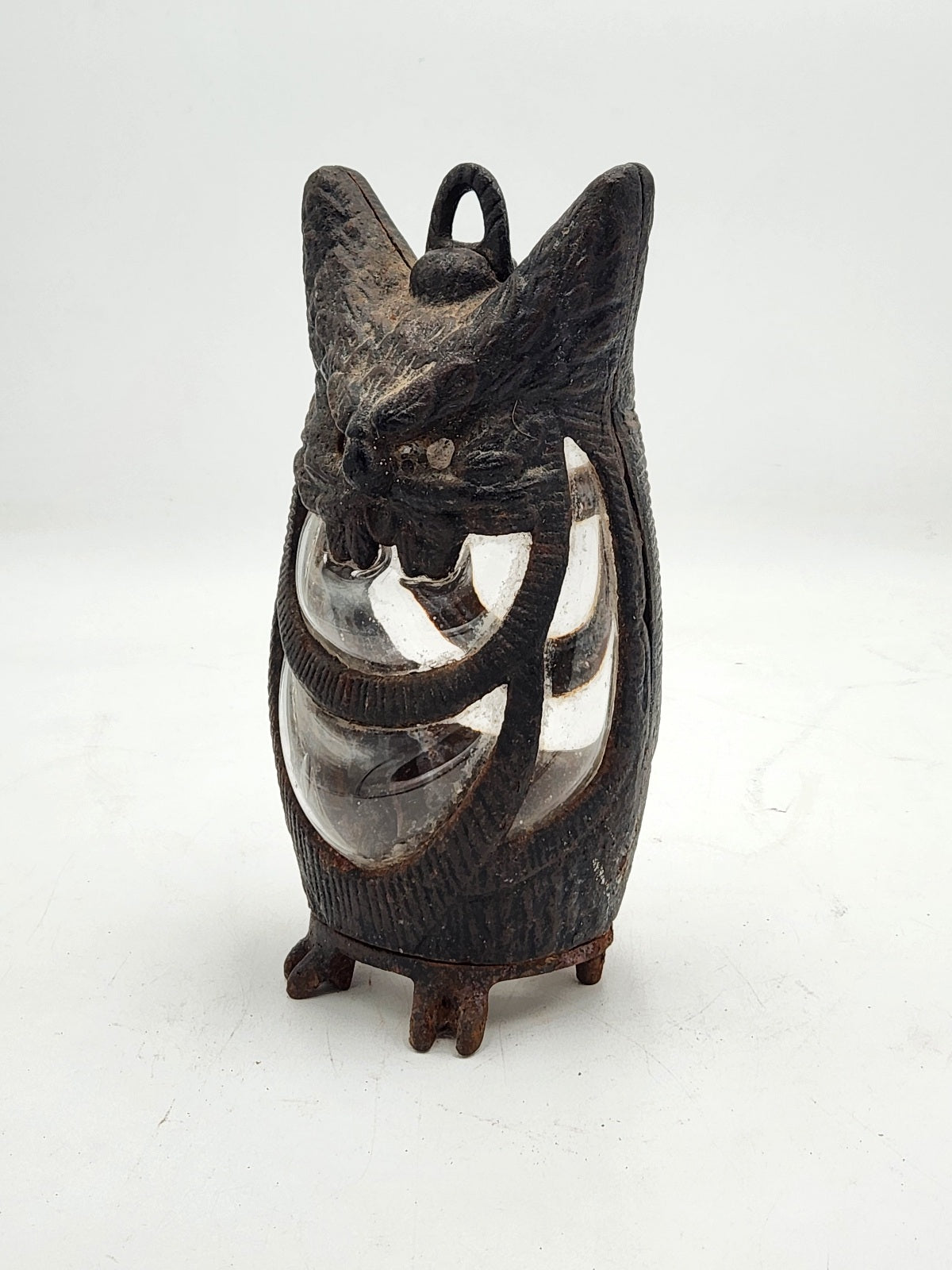 Midcentury, Cast Iron Owl Candle Holder Garden Lantern With Original Blown Glass