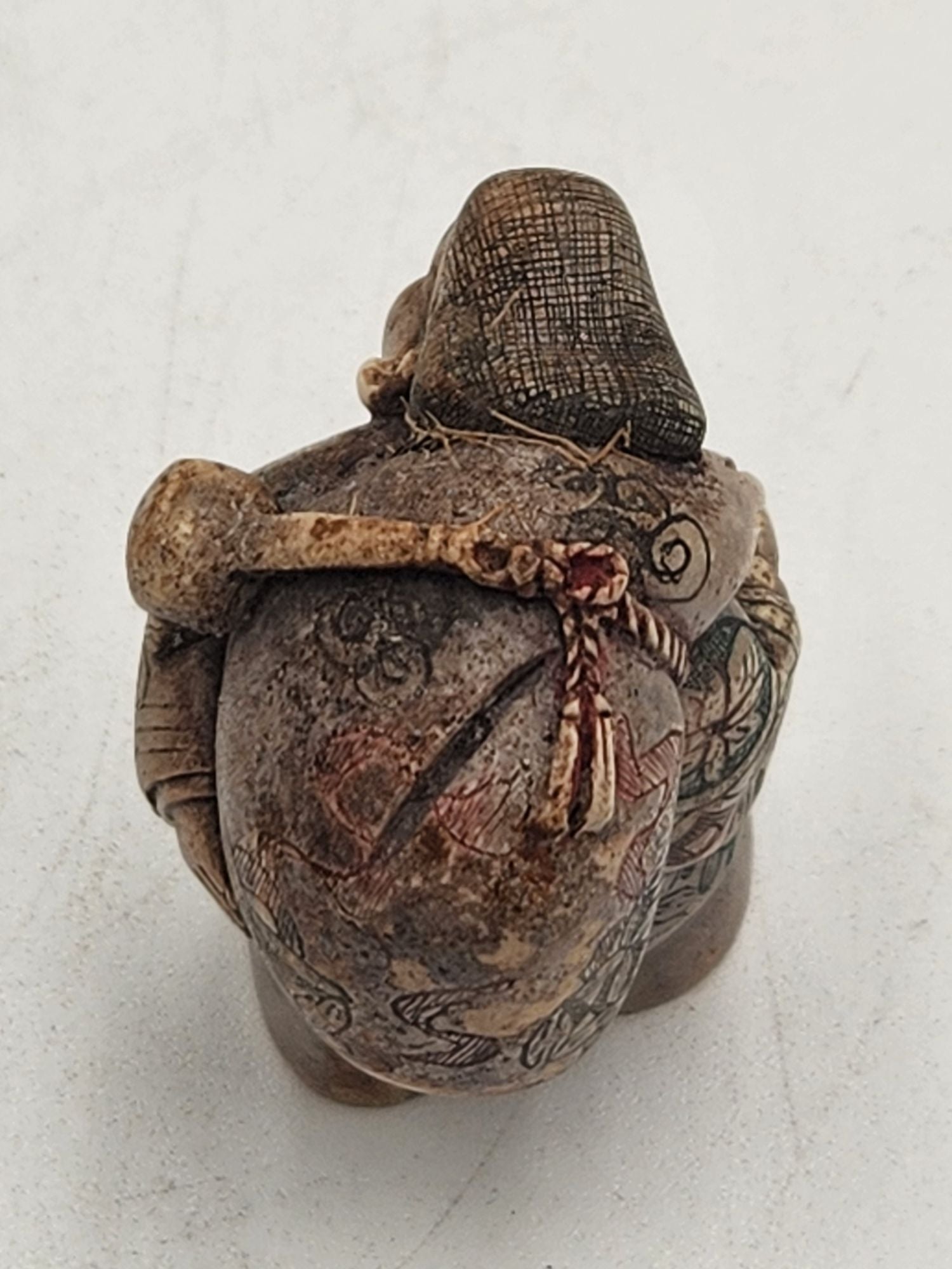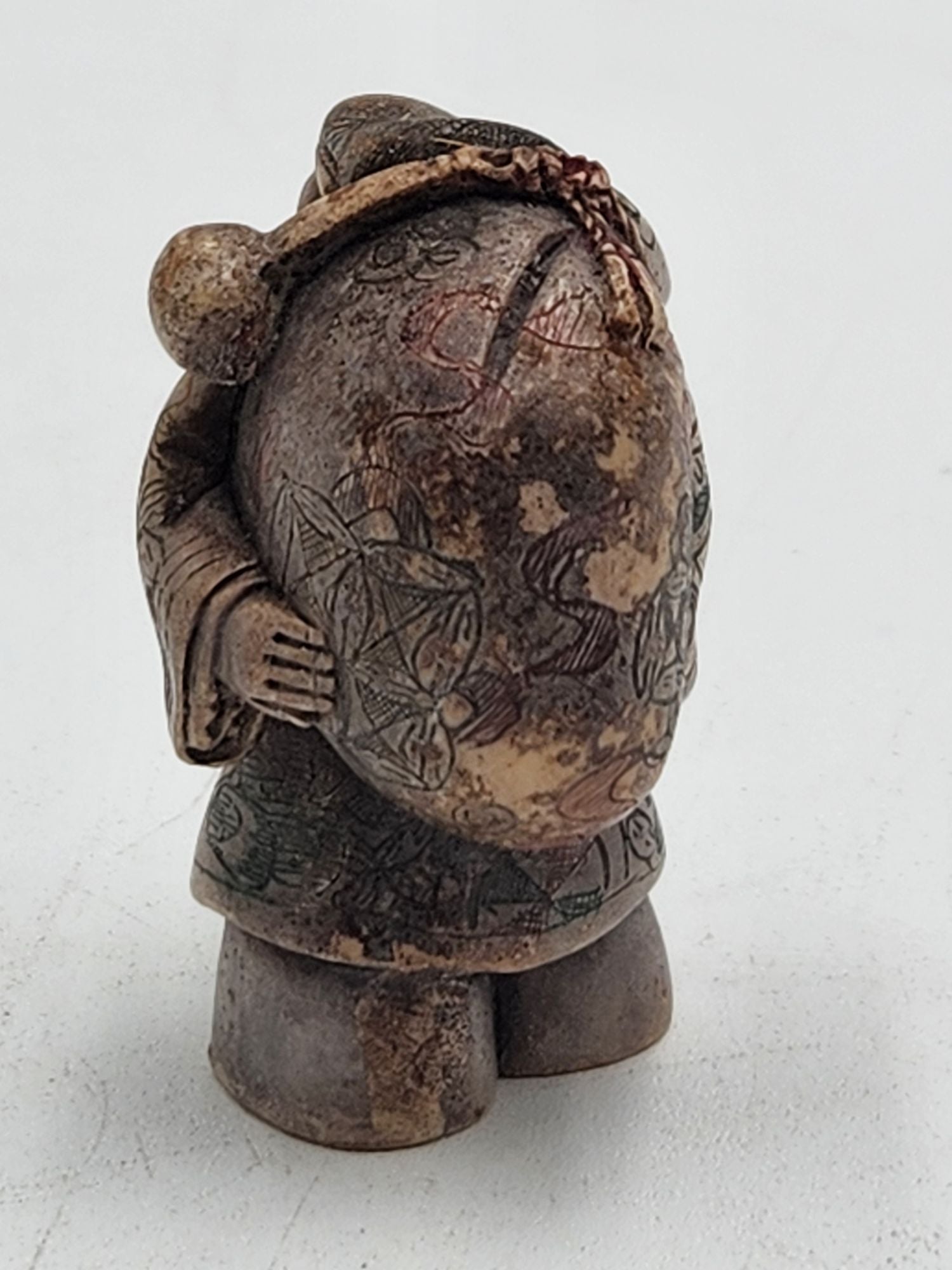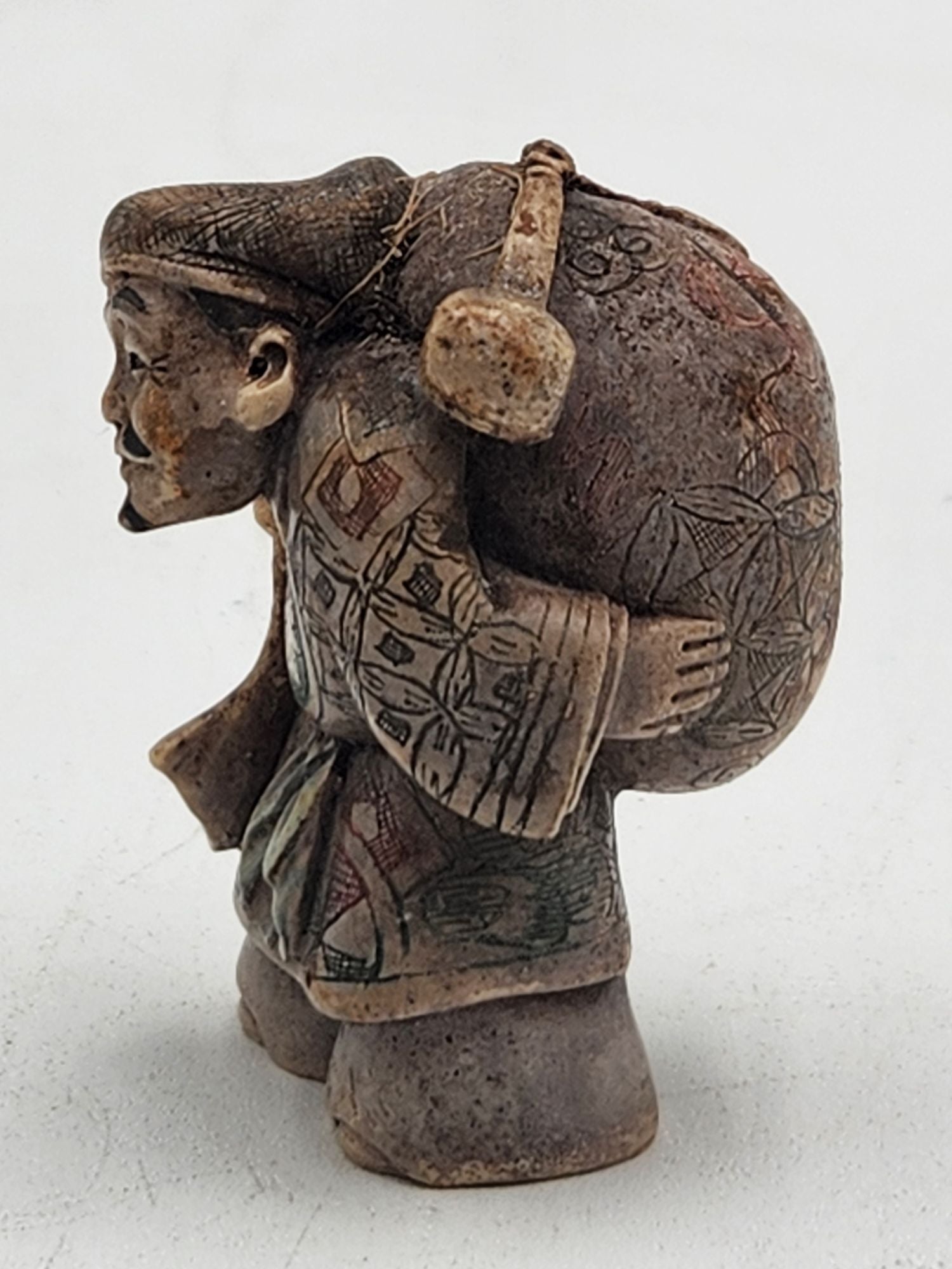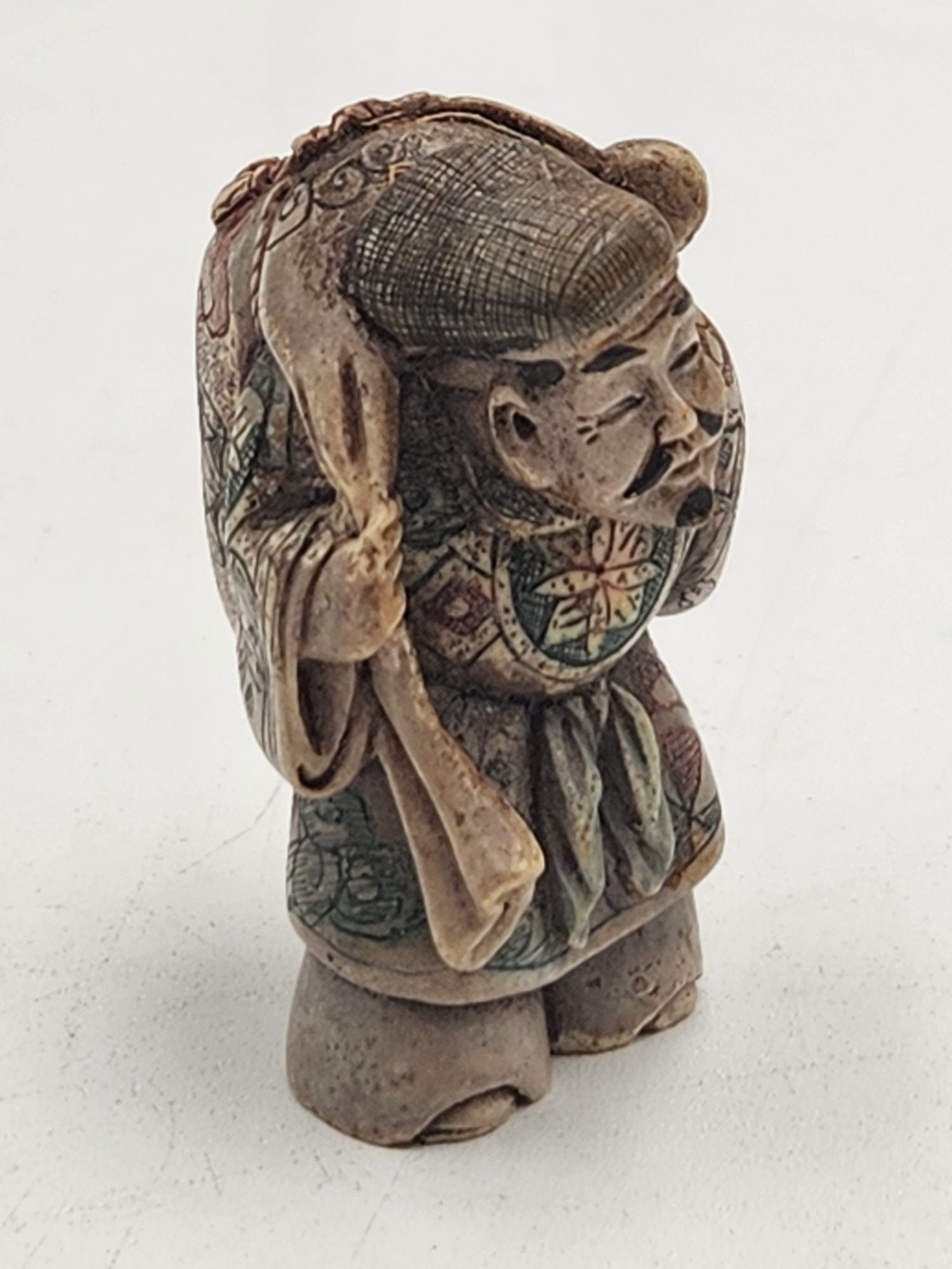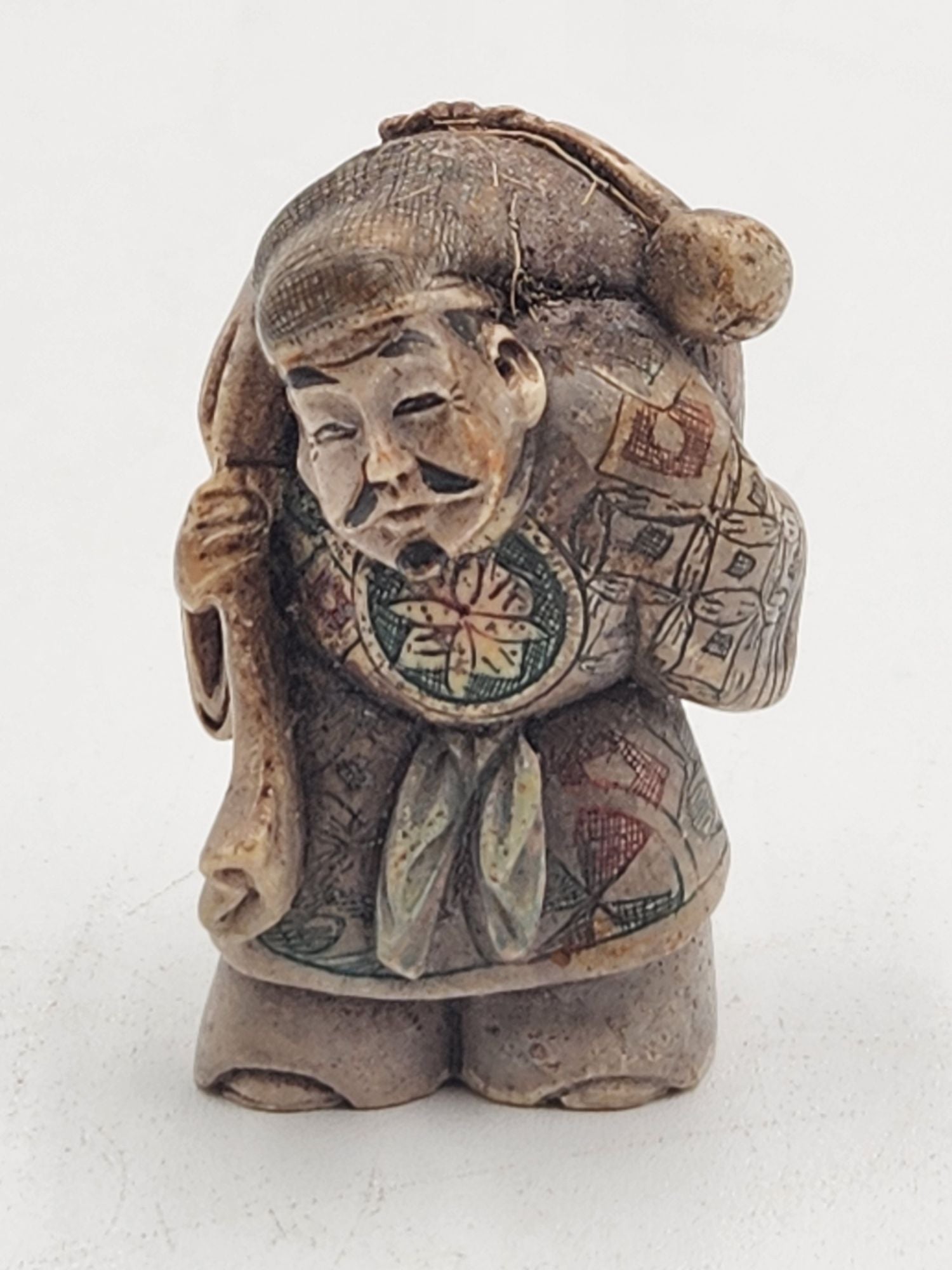 Netsuke Figurine 07 Guy Standing Carrying a Bag
