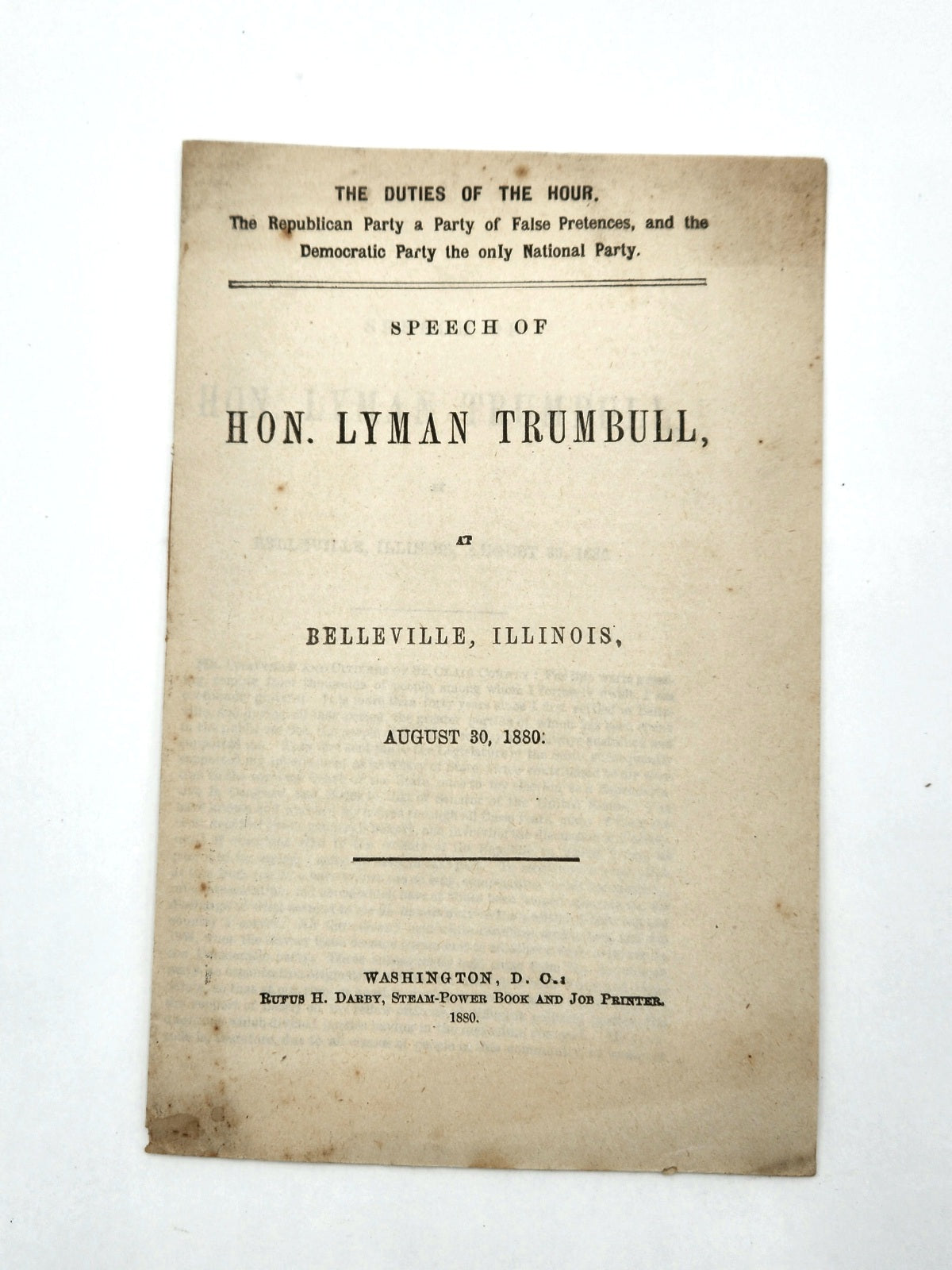 Speech of Lyman Trumball - Belleville, Illinois - August 30, 1880 16 pp