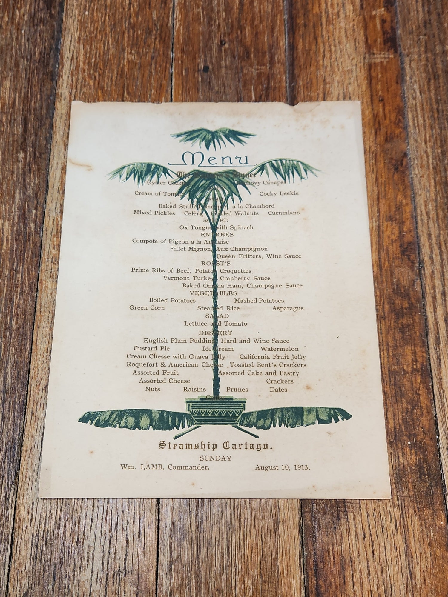 Steamship Cartago Aug. 10 1913 United Fruit Company