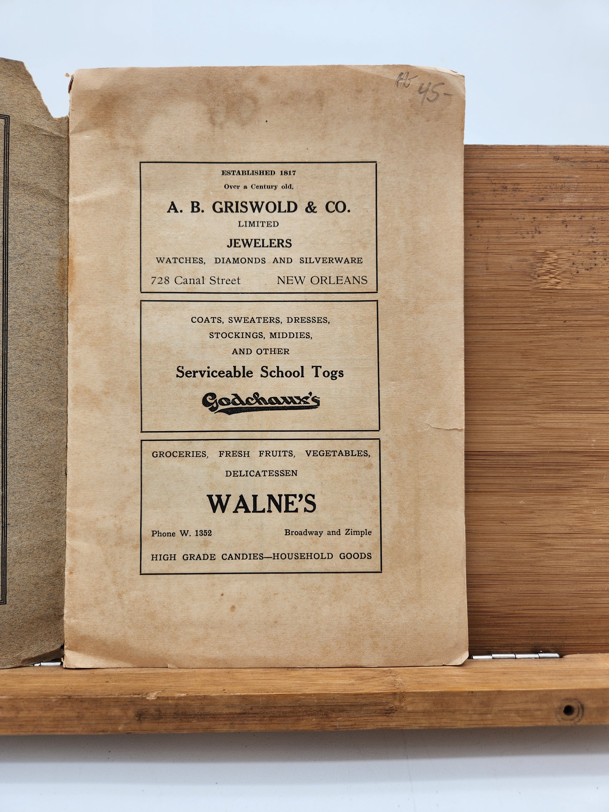An uncommon survivor from an early New Orleans high school, predating most modern yearbooks and offering valuable genealogical and historical interest.