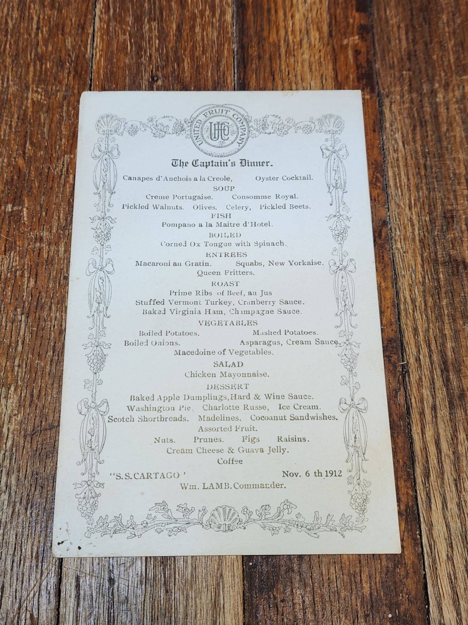 United Fruit Company, The Captain's Dinner. Nov. 6th 1912