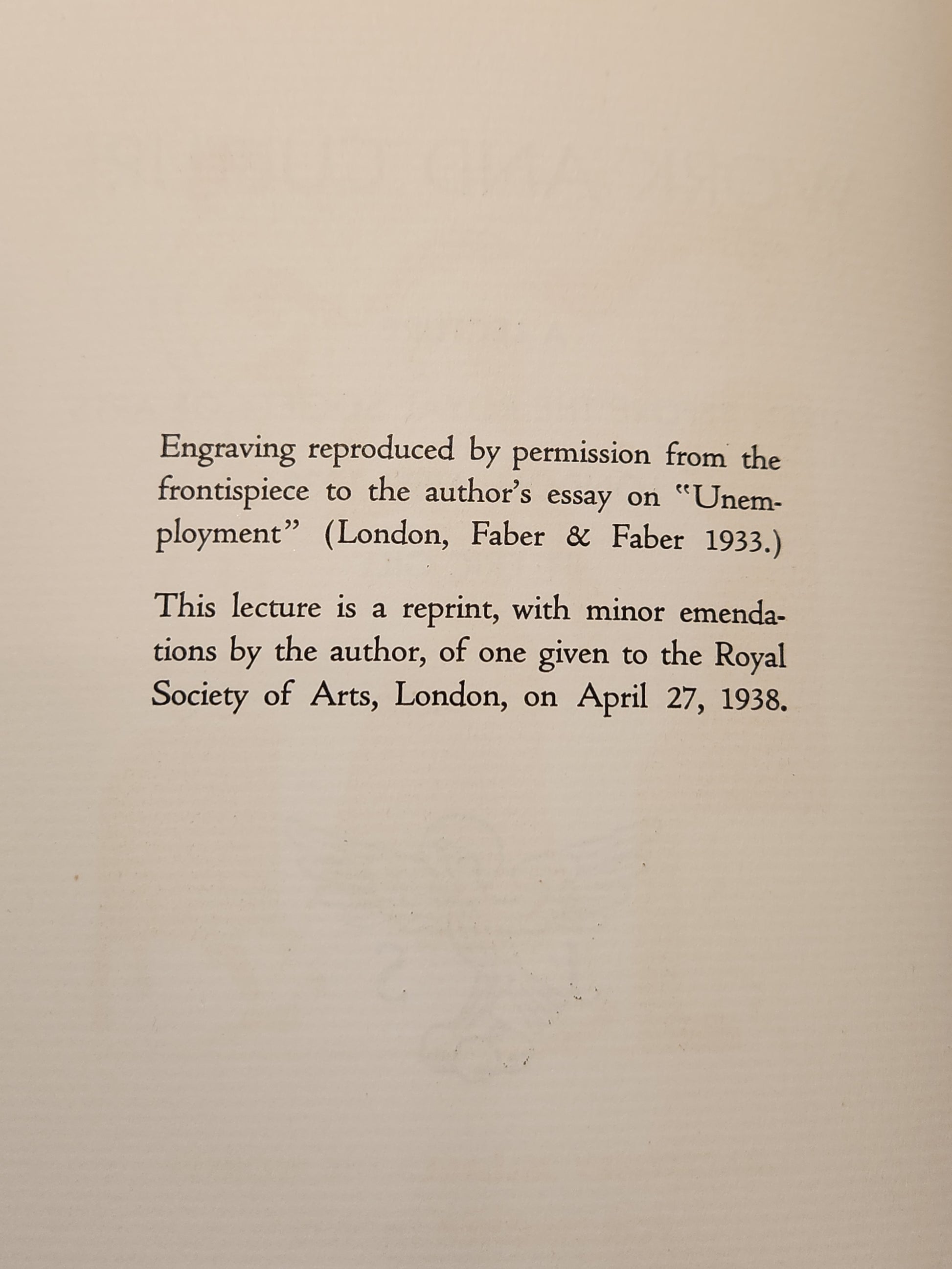 Title: Work and Culture, A Lecture Given Before the Royal Society of Arts