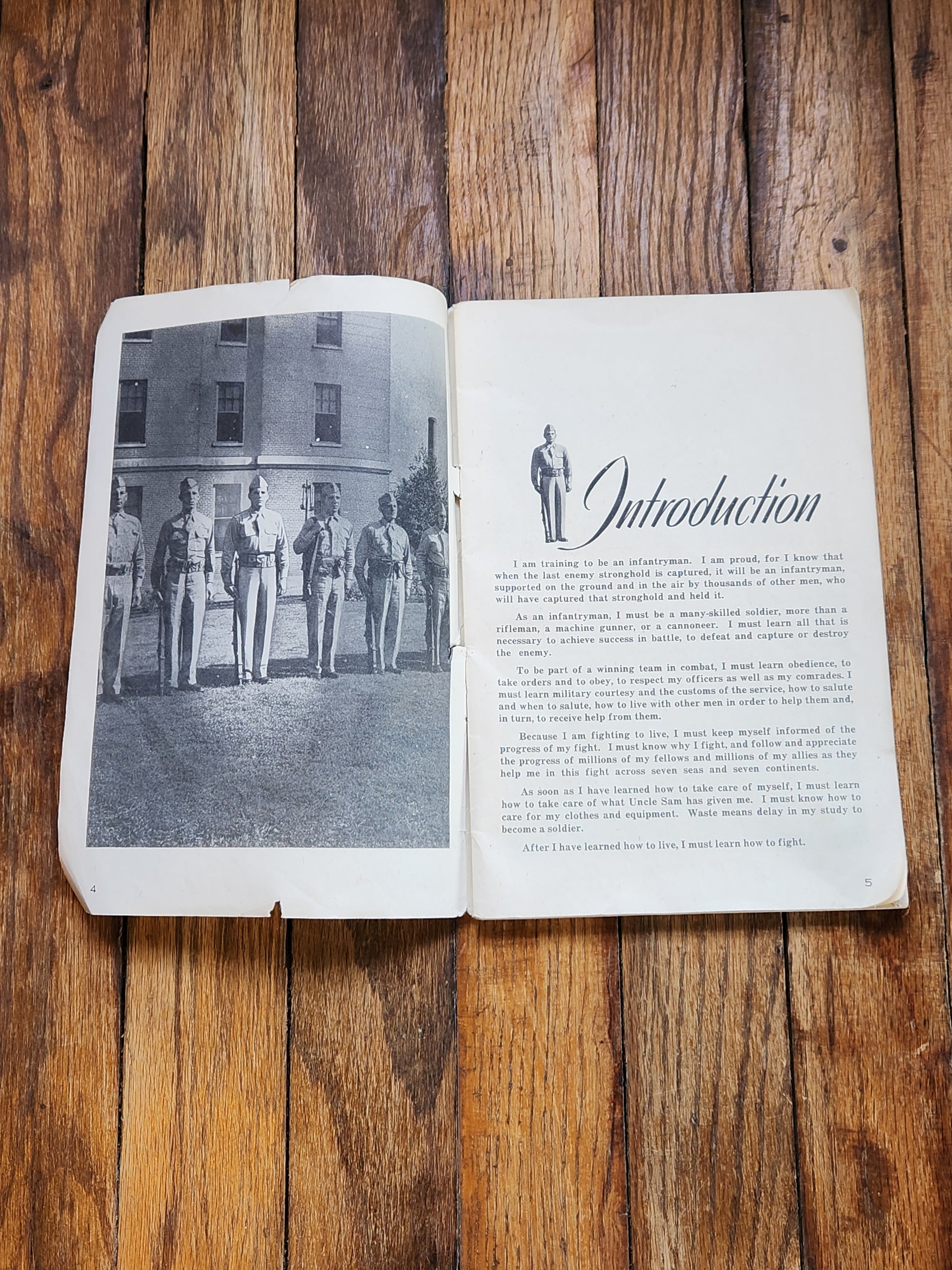A genuine WWII-era infantry training relic with direct personal connections to American soldiers of the Greatest Generation. Perfect for collectors of WWII militaria, Army training manuals, or family history research.